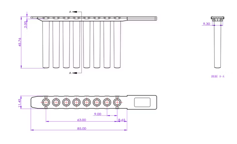 The 8-Strip Magnetic Rod Sleeve is designed for automated RNA and DNA extraction using magnetic bead systems like Tianlong Libex 32, Snibe Molecision 32, Bioer GenePure Pro, ADNap 32, Seegene SeePrep32. Made from high-quality polypropylene, it offers excellent chemical resistance, low binding, and efficient magnetic bead recovery.
