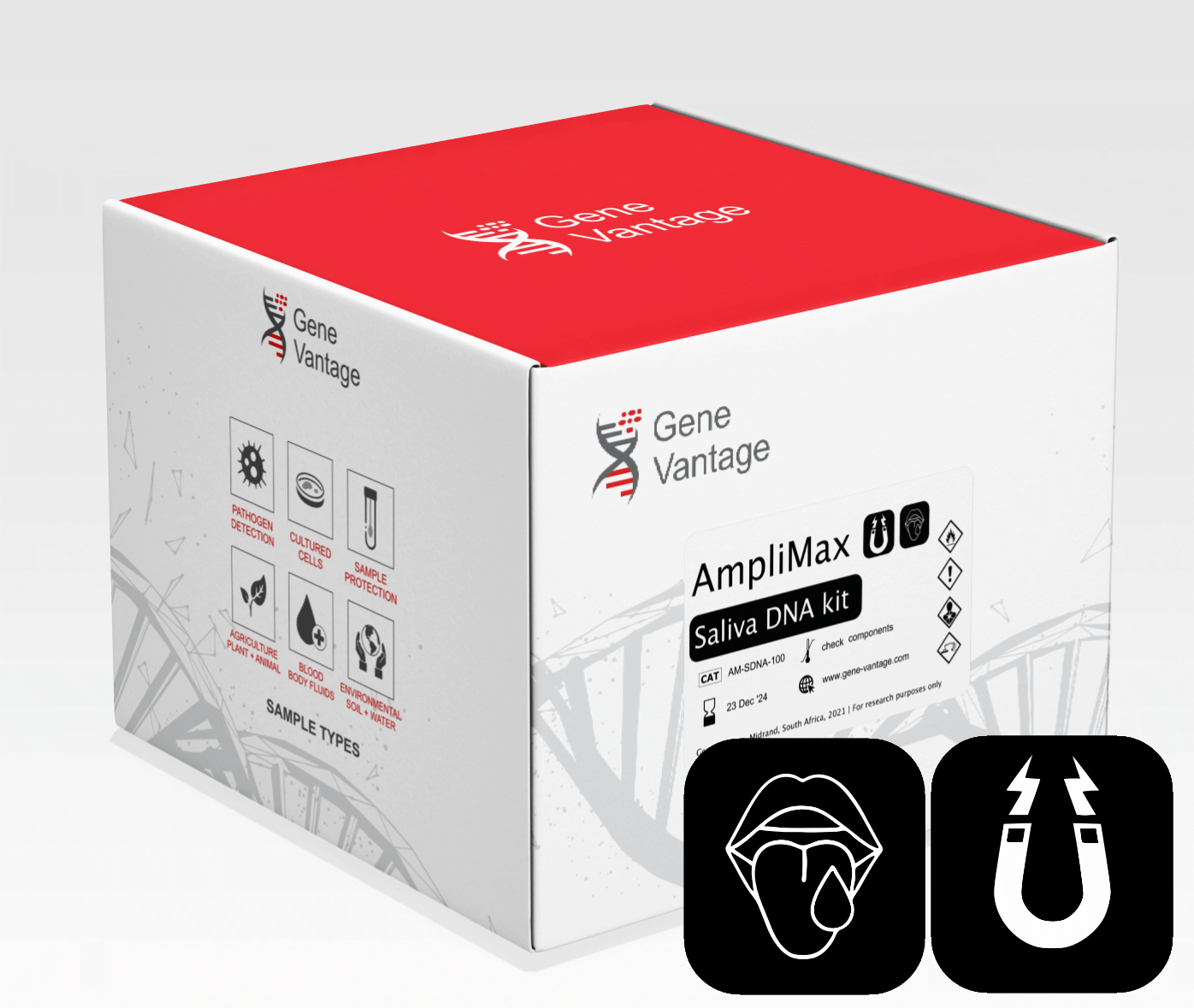 The AmpliMax Saliva DNA Extraction Kit is designed for the rapid and efficient purification of high-quality genomic DNA from human saliva samples. Saliva is a convenient, non-invasive sample type but can present challenges due to the presence of mucins, inhibitors, and microbial DNA. This kit uses advanced magnetic bead–based technology to overcome these issues, delivering pure, intact DNA that is ready for a wide range of downstream applications.